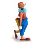 Palhaço feito em madeira, articulado com elástico, toda maleável, desenvolve a coordenação motora, o pensamento, faz-de-conta e vocabulário.