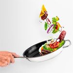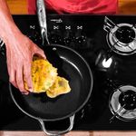 Após o preparo de uma refeição saudável, sem óleo e livre de resíduos, nada melhor do que a comida ir direto para o prato - sem grudar no fundo ou nas laterais da frigideira. E lavar vasilha após o almoço não será mais motivo de brigas e procrastinação. Basta uma simples passada de pano e sua ObaPro Pan está limpa!