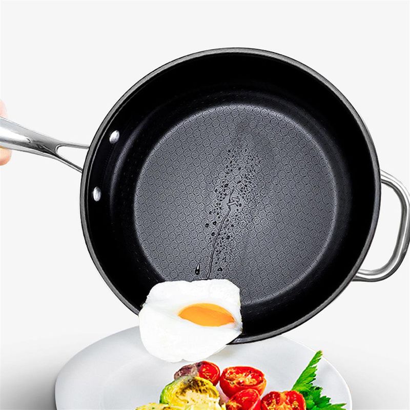 Tecnologia Tri-ply Heat Base, que distribui igualmente o calor por toda base da frigideira padronizando o cozimento do prato!