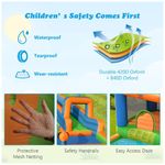 A área de salto é cercada por uma parede de malha respirável de 4 lados e as grades de proteção elevadas dos escorregadores aumentam ainda mais a segurança. O parque aquático do quintal foi projetado com canhões de água e um aspersor superior, que fornecem spray de água fria constantemente para deixar as crianças imersas em brincadeiras ao ar livre.