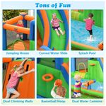 Além disso, a casa inflável de salto de água combina uma variedade de funções e entretenimento em um, incluindo um longo escorregador, parede dupla de escalada, piscina infantil e área de salto. Feito de material durável à prova d água, resistente a rasgos e com costura de reforço duplo, o castelo saltitante pode acomodar várias crianças para brincarem juntas com segurança.