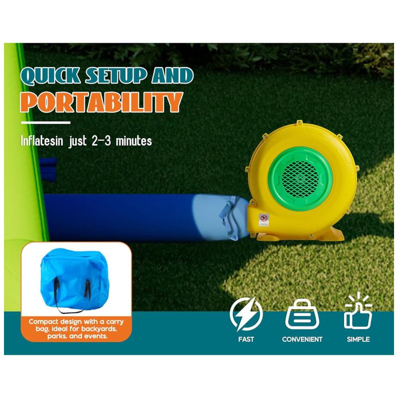O Pula Pula Inflável Albott é o sonho de toda criança! Com cercas de segurança, paredes reforçadas, tecido Oxford de alta qualidade e costuras resistentes, oferece máxima segurança e durabilidade. Seu design de fluxo de ar contínuo evita superinflação, garantindo diversão sem preocupações. Com área de brincadeira multifuncional, incluindo escorregadores, cesta de basquete, parede de escalada, piscina, pistolas d'água e gol de futebol, proporciona entretenimento interminável. Fácil de montar e guardar, é perfeito para festas, eventos e diversão em família.