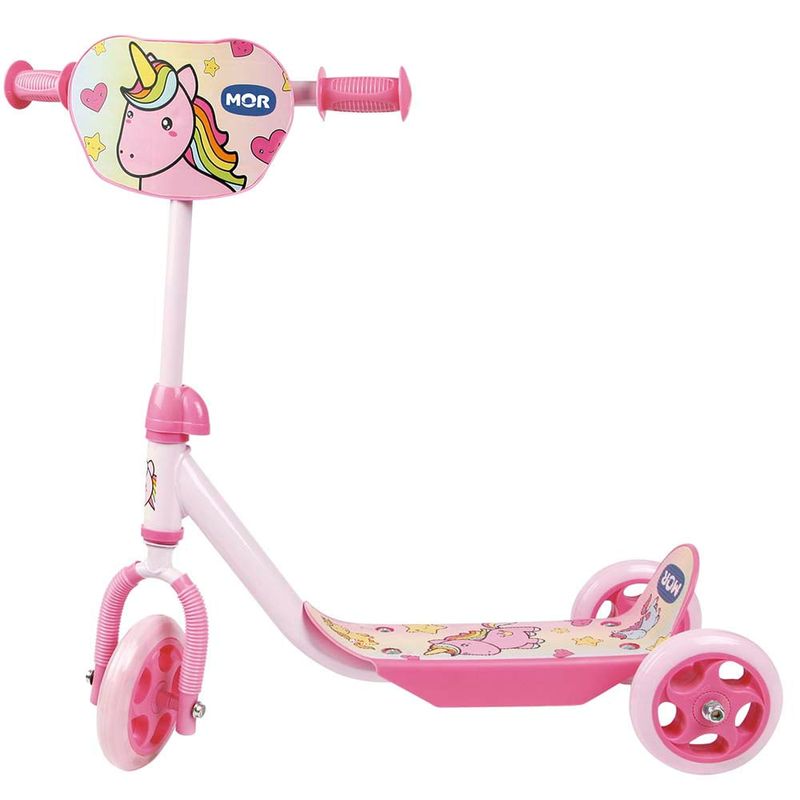 Chegando para divertir e incentivar a prática de esportes para a garotada, o Patinete 3 Rodas Infantil Rosa da Mor foi produzido com base antiderrapante, guidão com altura ajustável e manoplas com apoio lateral. Possui estrutura em aço, rodas em polipropileno e PVC, peças plásticas em polipropileno, manopla em PVC, base em polipropileno e parafusos em aço. É ideal para o público infantil. Produzido em rosa e com desenhos de Unicórnios, é a nova sensação da galera que curte esportes e aventura. Recomenda-se peso máximo de 30 Kg e para crianças acima de 3 anos.