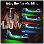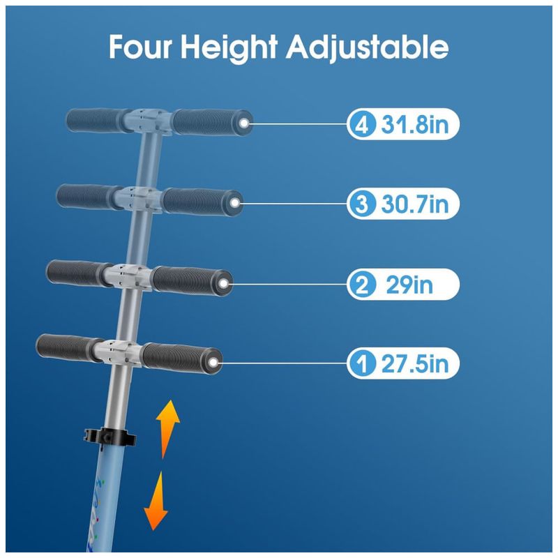 A scooter infantil foi projetada com guidão ajustável e 4 opções de altura ajustável, permitindo que as crianças encontrem a altura de pilotagem perfeita. É indicada para crianças de 6 a 10 anos e é equipada com rodas dianteiras iluminadas em PU e luzes LED nos pedais, tornando a divertida e altamente visível.