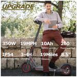 Poderosa scooter elétrica com motor de 350 W Esta scooter elétrica com potência de motor de 350 W, você pode atingir a velocidade máxima de 30 km e passar facilmente em declives íngremes de 20 . Scooter elétrica para adultos até 30 km com uma carga de 3 4 horas, esta scooter motorizada suficiente para escola, trabalho e viagens curtas depende do peso do usuário, terrenos e assim por diante. Atualização da capacidade da bateria 10Ah tem proteção contra sobrecarga e descarga excessiva. Adequado para pessoas com altura de 130 para pedalar. e carga máxima de 120 kg.