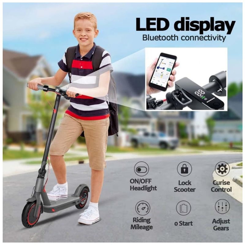 Smart APP Control O display LED mostra a velocidade atual, modo de velocidade os três modos de velocidade podem ser alternados arbitrariamente., distância de viagem, duração da bateria, etc. Você pode baixar o aplicativo gratuito para conectar sua scooter elétrica via Bluetooth . É uma maneira muito inteligente que pode ajudá lo de forma fácil e multifuncional a usar a scooter elétrica