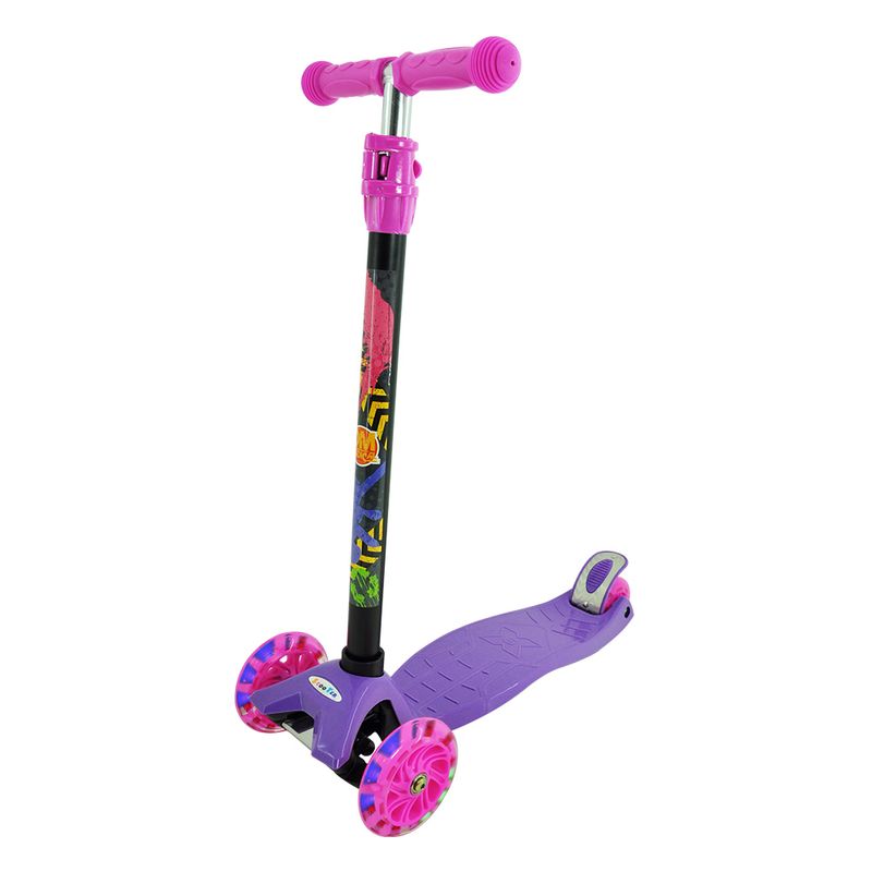 O Patinete New Plus é muito legal! Possui luz nas rodas e duas rodas dianteiras que dão mais facilidade na hora de fazer curvas.