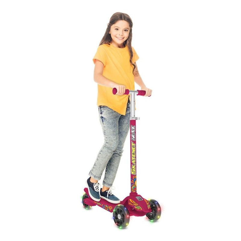 Com o Patinete Skatenet Bandeirante Max Pink - Rosa as crianças estão sempre prontas para novas aventuras! Seja ao explorar terrenos ou executar manobras radicais, ele garante toda a segurança e conforto que o baixinho precisa. Possui freio traseiro, textura na base para maior aderência e suspensão dianteira. As rodinhas com luz de LED são incríveis. Elas se iluminam quando o patinete esta em movimento.