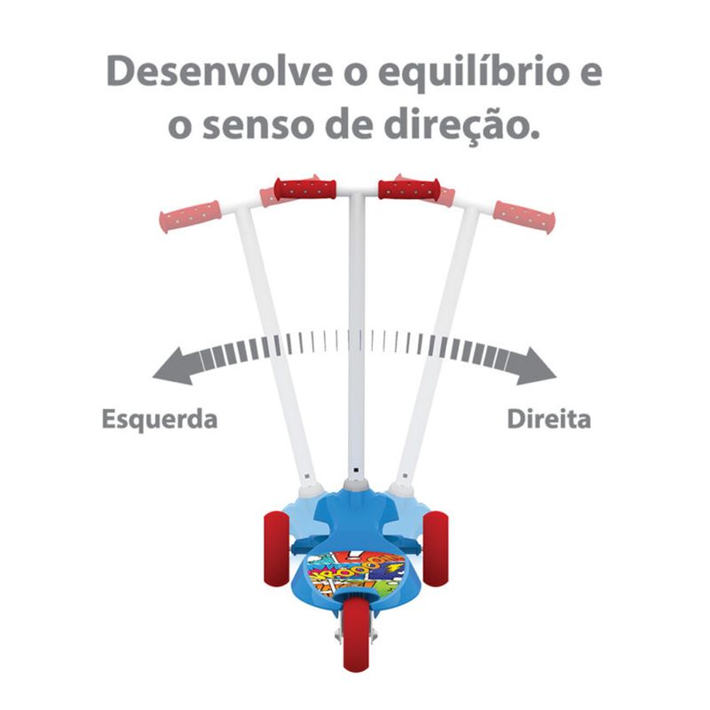 Desenvolve o equilíbrio e o senso de direção, com o guidão fixo o Skatenet vira para a esquerda ou para a direita com a inclinação do corpo.