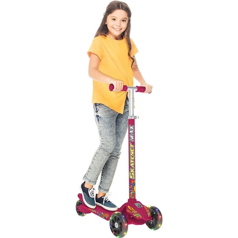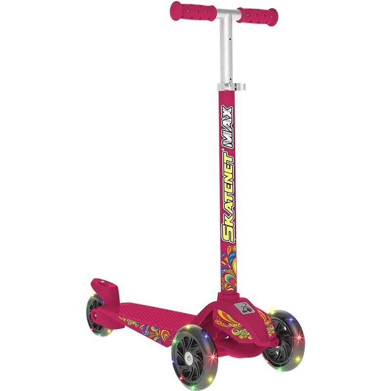 Patinete Skatenet Max Led Pink 1521O brinquedo perfeito para as manobras mais radicais!Freio traseiro.Textura na base para maior aderência e segurança.
