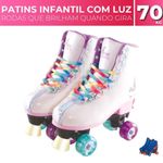 Com rodas que brilham quando giram, e com trava borboleta para regulagem de tamanho. Basta girar a trava para um dos lados que ele aumenta ou diminui de tamanho sem mexer no patins.
