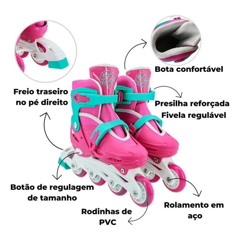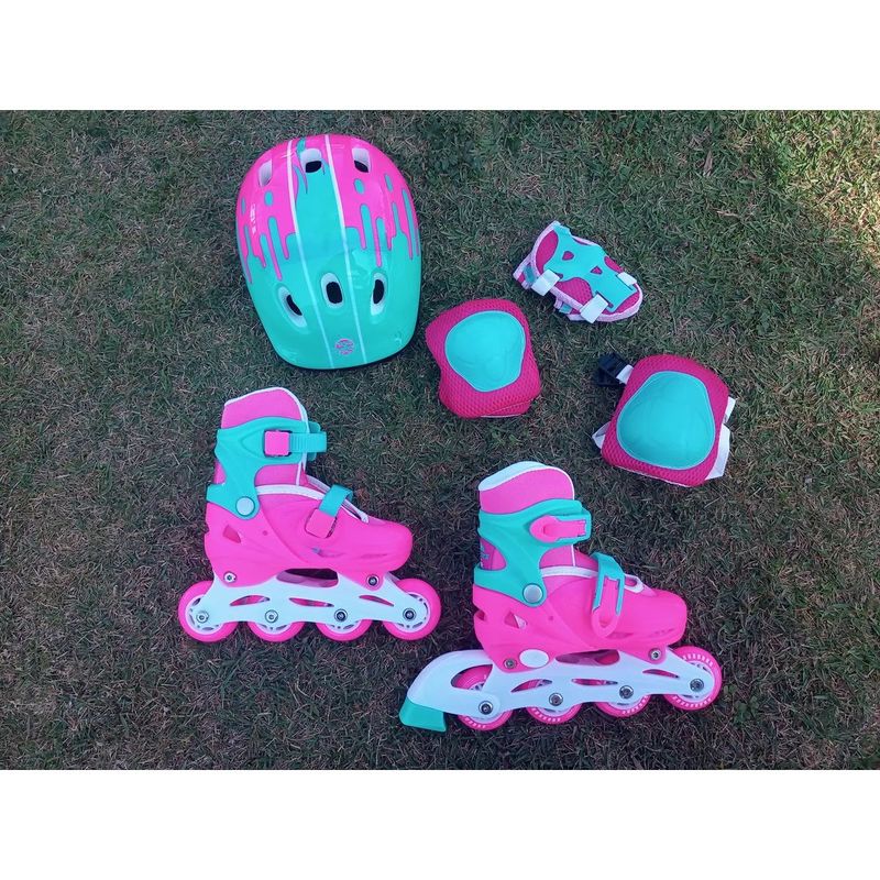 KIT COMPLETO: par de Patins, Capacete, par de Cotoveleiras, par de Joelheiras e par de Luvas de Proteção.