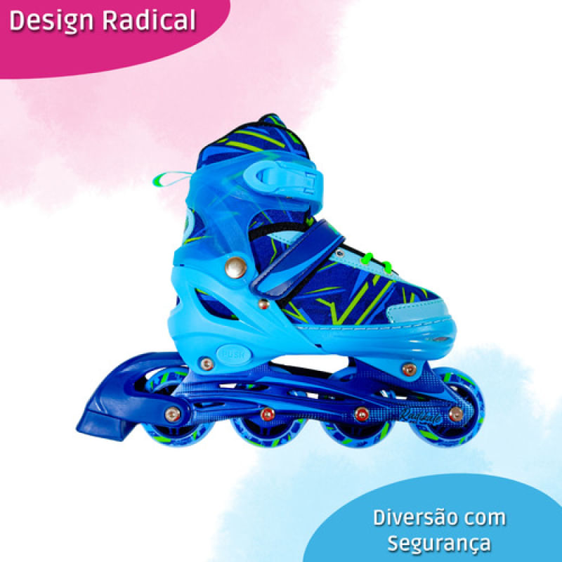 O sistema ajustável acompanha o crescimento do pé, proporcionando maior durabilidade e conforto em cada aventura. Resistente e confortável, suporta até 60 kg, sendo ideal para acompanhar os pequenos em seus primeiros passos sobre rodas.
