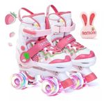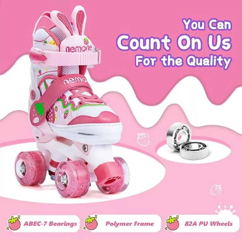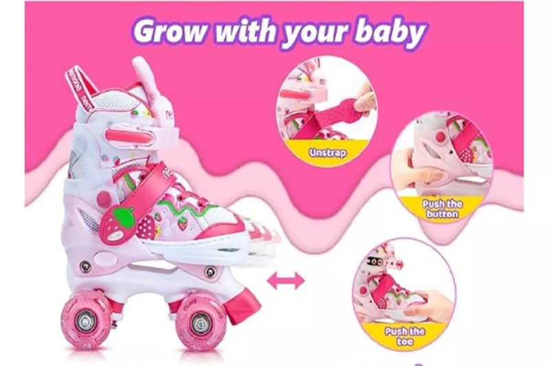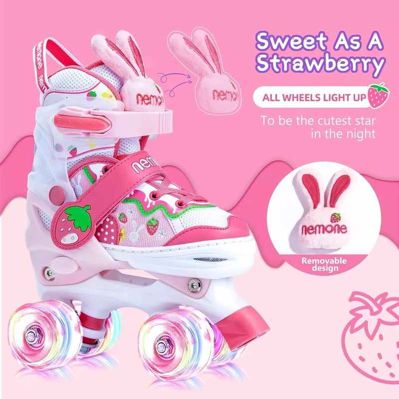 Patins Infantil Morango Quad Ajustável + Rodas Em Led