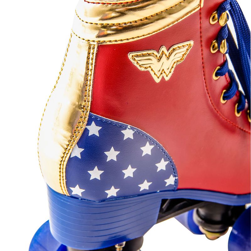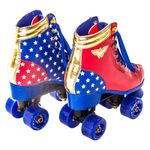Deslize como uma verdadeira heroína! Garanta já os Patins Retro Mulher Maravilha da Bel e leve o poder e o charme da princesa amazona para as suas aventuras.
