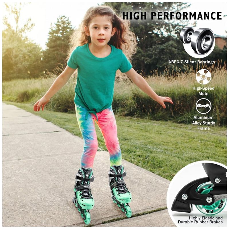 TAMANHO AJUSTÁVEL: Verifique nossa tabela de tamanhos na imagem do produto para garantir a escolha do par correto. Com um simples botão de ajuste facilita e torna conveniente a adaptação a diferentes tamanhos, garantindo anos de diversão. Não é mais necessário se preocupar com o crescimento dos pés do seu filho.