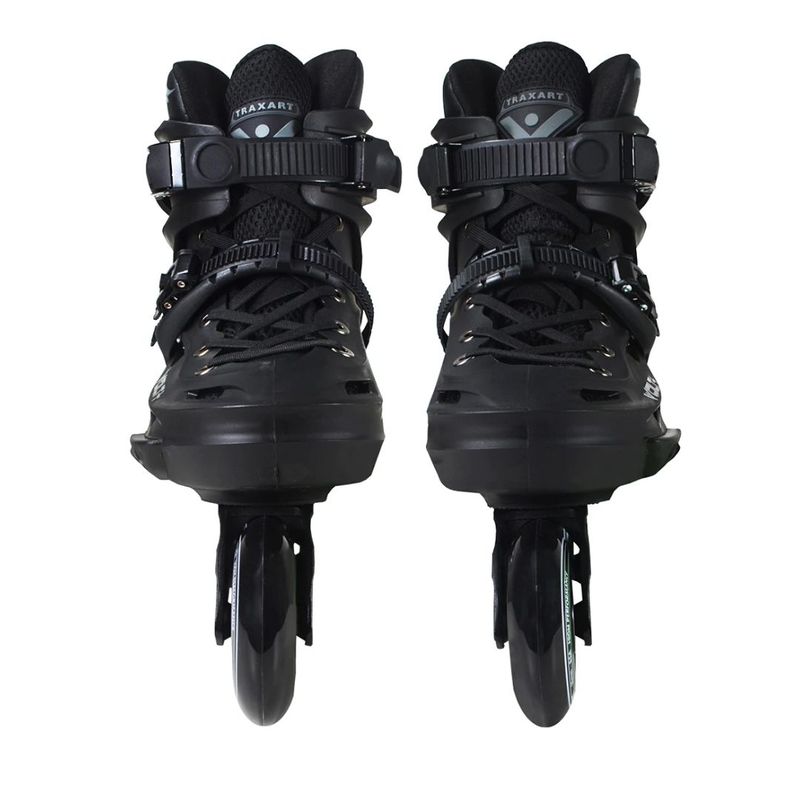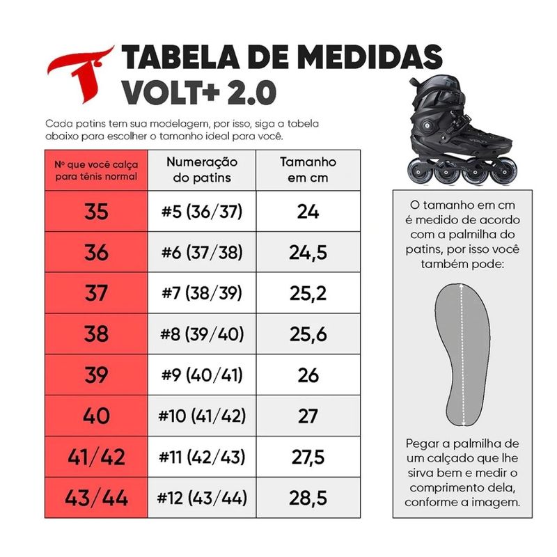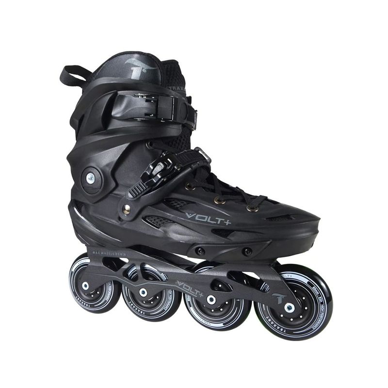 O Patins Freestyle Urban Traxart Volt + 2.0 Preto é a versão atualizada do patins Volt + e agora nessa cor lançamento. Esse modelo conta com fivela de precisão no peito do pé e rodas SHR. Modelo da linha Freestyle Urban, é uma ótima opção para quem procura um patins que desenvolve bem na prática de urban, saltos, slalom, e também para passeio. Suporta até 120kg.