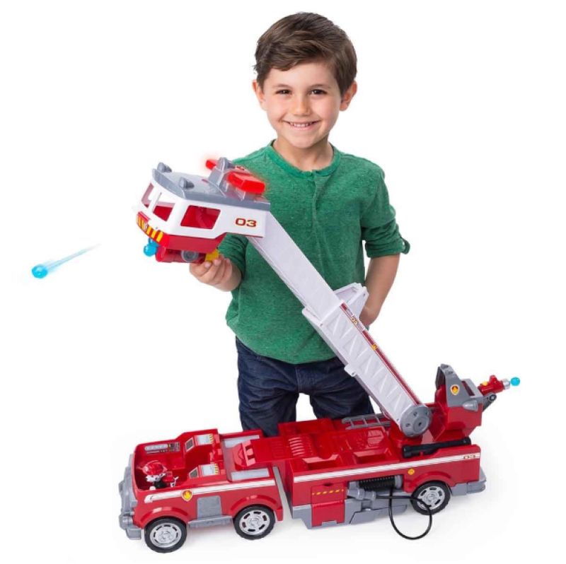 Salve o dia com o Caminhão de Bombeiros Ultimate do Marshall! Equipado com uma escada extensível de 60cm, um mini carrinho de bombeiro, luzes e sons, este caminhão de bombeiros está pronto para missões cheias de ação! Use os lançadores de canhões d'água na frente e na traseira deste veículo para apagar incêndios! O conjunto ainda inclui 3 figuras dos seus filhotes favoritos: Chase, Marshall e Skye.
