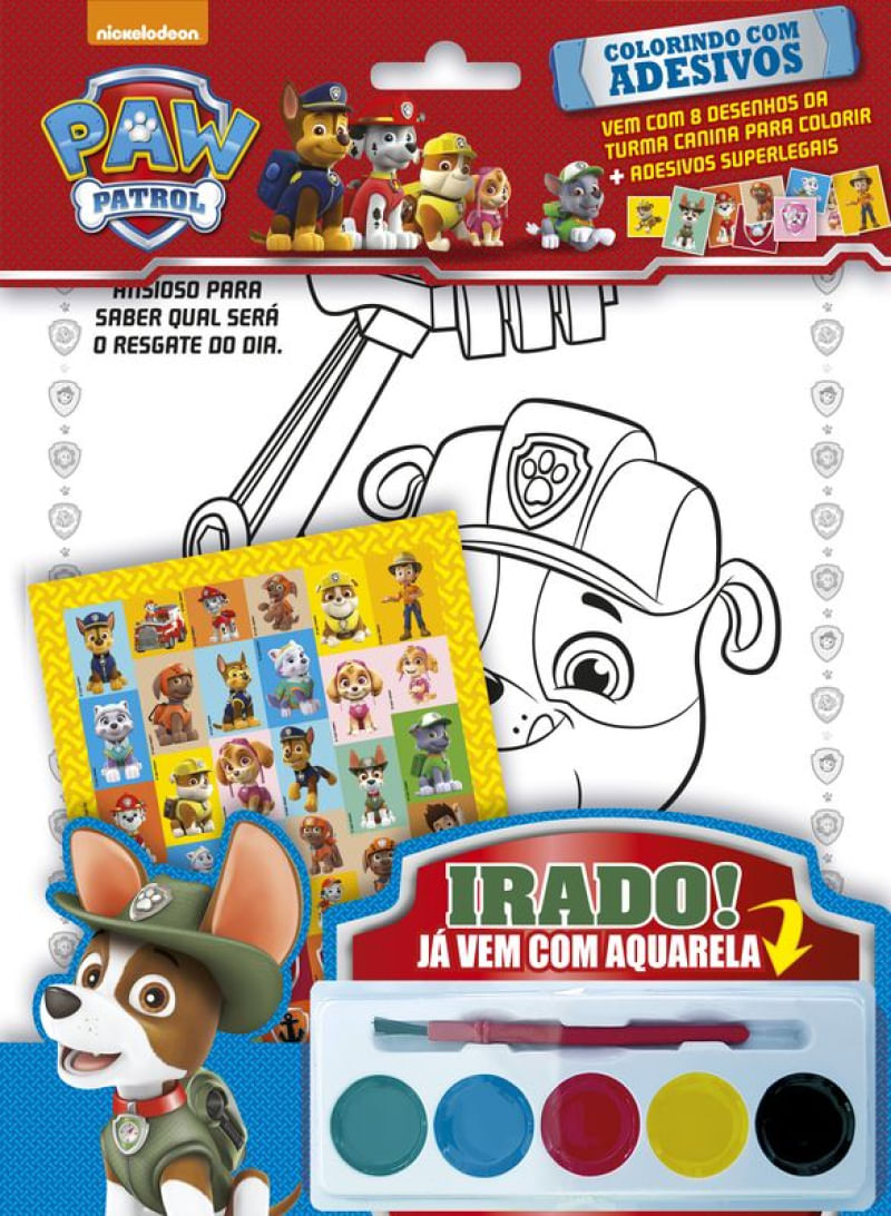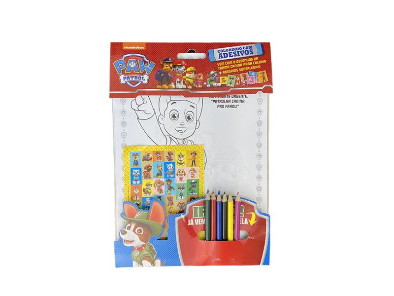 Chegou o colorindo com adesivos Patrulha Canina, venha brincar e se divertir com está turma, são 8 desenhos incríveis para colorir, adesivos superlegais e vem com uma aquarela.