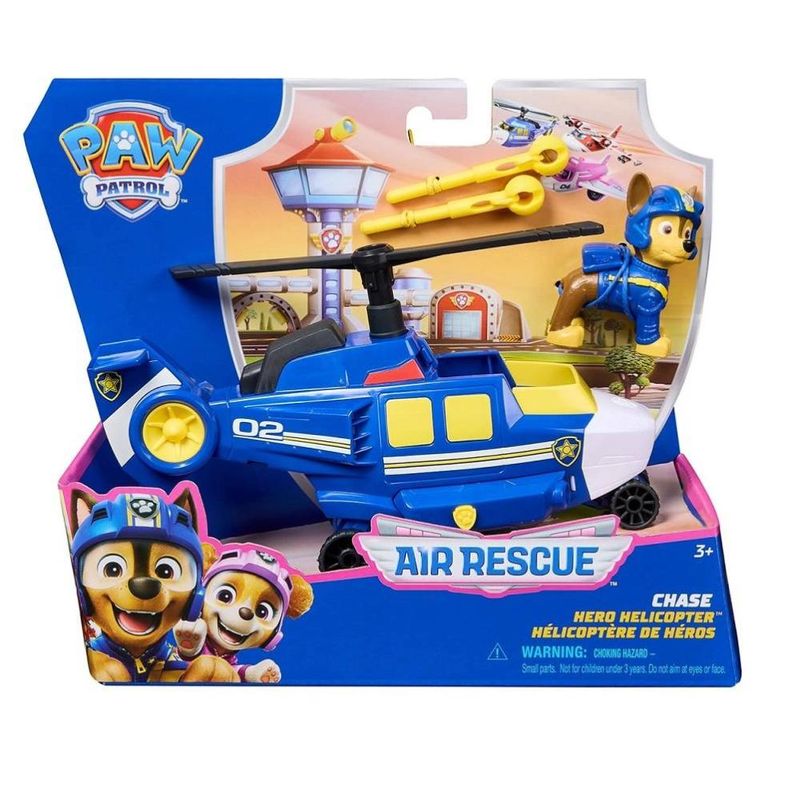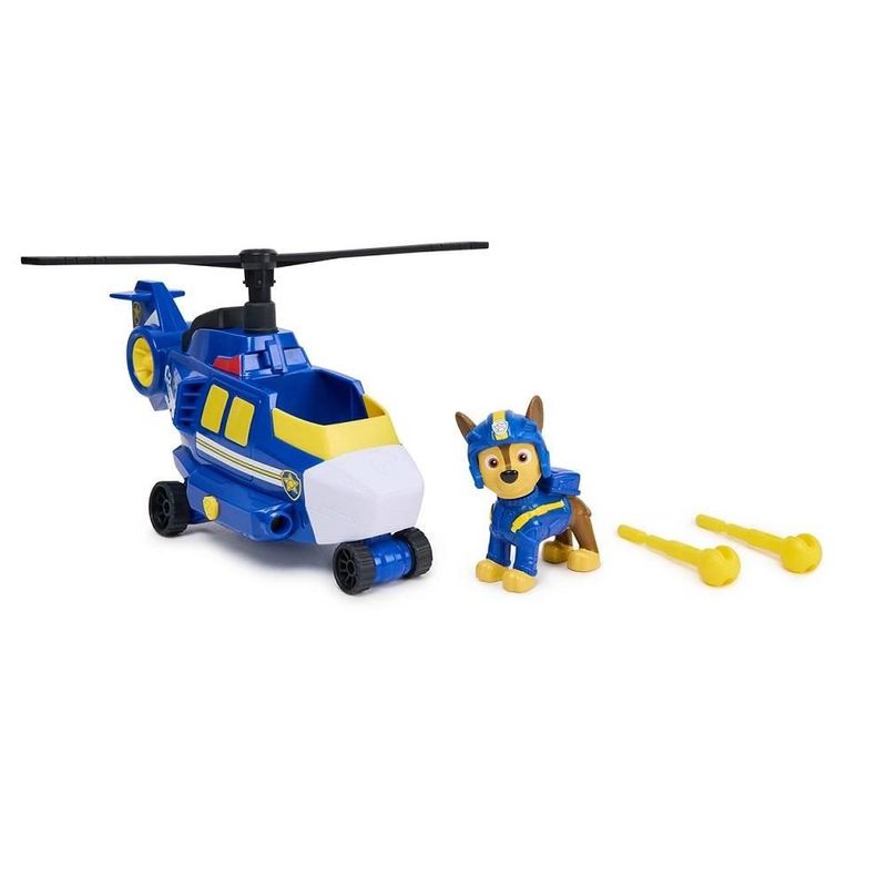 Entre em ação com Air Rescue Chase e seu helicóptero de brinquedo com tema policial! Quando chegar a hora de um resgate cheio de ação, prenda os pés de Chase na posição na cabine e gire as hélices antes de decolar em sua missão! Carregue o canhão com um dos dois dardos de resgate incluídos e pressione o emblema PAW no helicóptero para lançá-los e salvar o dia! Chase tem mais de 5 centímetros de altura e está equipado com sua jaqueta e capacete azuis do Air Rescue!