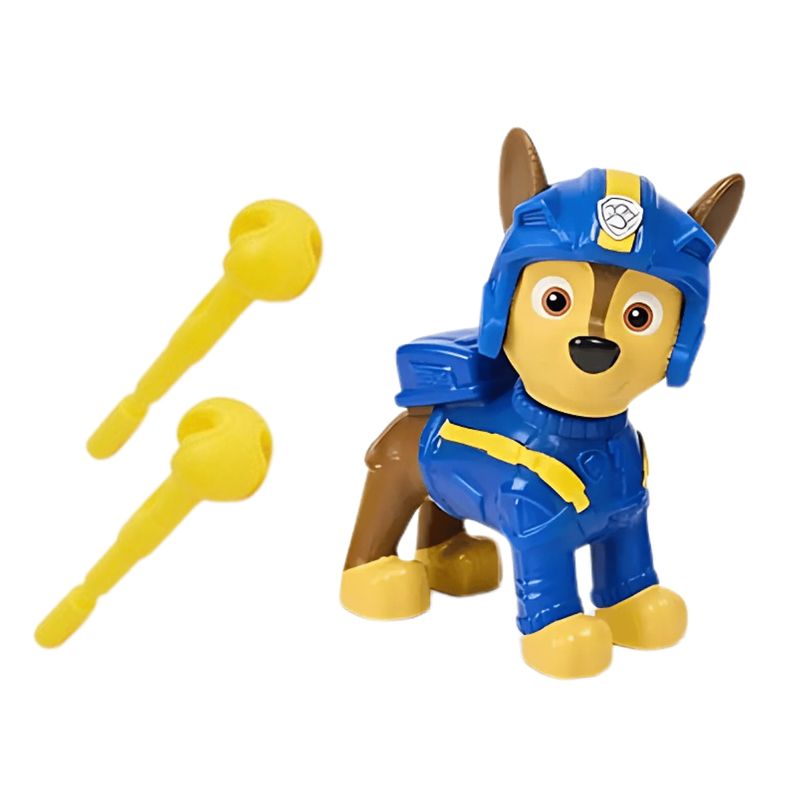 Quando chegar a hora de um resgate cheio de ação, prenda os pés de Chase na posição na cabine e gire as hélices antes de decolar em sua missão! Carregue o canhão com um dos dois projéteis de resgate incluídos e pressione o emblema PAW no helicóptero para lançá-los e salvar o dia!