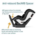 A barra anti rebote protege o bebê, minimizando as forças e reduzindo a rotação em caso de colisão frontal ou traseira. O ARB é integrado e dobrável. O espaçador ARB permite o uso prolongado voltado para trás, aumentando o espaço para as pernas do seu filho em .
