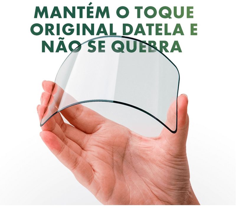Possui acabamento em bordas 2.5D, que se adaptam as extremidades dos aparelhos suavizando o toque e eliminando a sensação cortante.