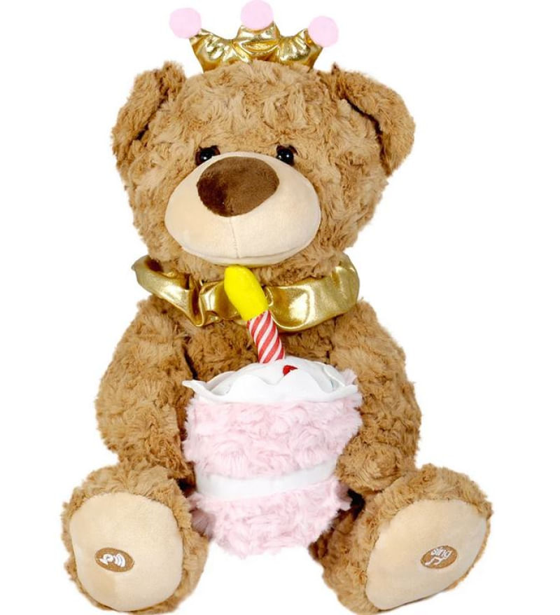 Ela canta a música Parabéns pra Você, e o mais mágico acontece: a vela do bolinho acende com luz enquanto a música toca, criando uma atmosfera festiva e encantadora. A diversão não para por aí A pelúcia ainda repete tudo o que a criança fala, tornando a brincadeira ainda mais interativa e hilária.
