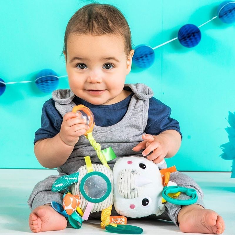 Cheio de atividades, possui tecidos crocantes, chocalhos, anéis coloridos, mordedores, espelho e fitas de cetim. Ajuda no desenvolvimento visual, tátil e cognitivo do bebê!