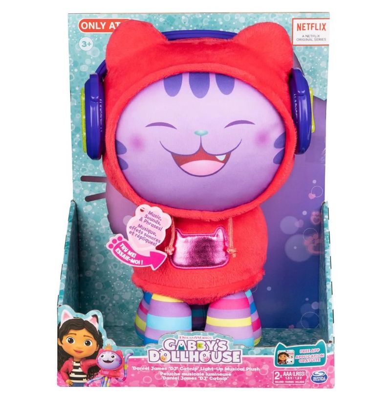 DÊ VIDA AO DJ CATNIP. Aperte sua barriga para fazer seus fones de ouvido acenderem e ativar 20 efeitos sonoros diferentes, músicas e frases do show. CARACTERÍSTICAS REALISTAS. Com detalhes realistas, o DJ Catnip se parece com o melhor amigo de Gabby, apresentando detalhes bordados, pernas coloridas, orelhas pontudas e fones de ouvido que iluminam. SUPER SUAVE E FOFINHO. O DJ Catnip transformará a hora de brincar ou de dormir em uma aventura divertida. Feito de materiais super macios, este bichinho de pelúcia de luxo está sempre pronto para abraços e sonhos noturnos. COLECIONE OS BRINQUEDOS DE GABBY. Os brinquedos de Gabbys são ótimos presentes para crianças que adoram brincar com bonecas e acessórios, brinquedos surpresa, bichos de pelúcia, quebra-cabeças, jogos de tabuleiro e muito mais. UMA INFÂNCIA MÁGICA COM SUNNY. Há mais de 15 anos, a Sunny faz a ponte entre o mundo do faz de conta e os apaixonados por brinquedos, sempre mudando a brincadeira e garantindo que ela nunca acabe. Dê o seu groove com a Gabbys Dollhouse! Divirta-se com o DJ Catnip interativo, o brinquedo de pelúcia falante! Este adorável brinquedo está vestido com seu capuz exclusivo, e tem mais de 10 cm de altura, com pelo super macio, detalhes bordados finos, pernas coloridas e orelhas pontudas! Dê ao DJ Catnip um enorme abraço e aperte sua barriga para ativar uma combinação de 20 efeitos sonoros, frases e música diferentes, para aventuras ainda mais emocionantes de faz de conta! Ele também tem fones de ouvido enormes que se iluminam, com um recurso de piscar sincronizado para acompanhar todos os seus efeitos sonoros e música!