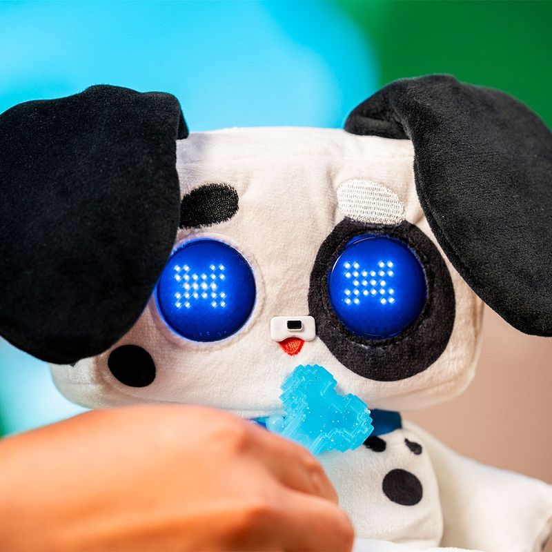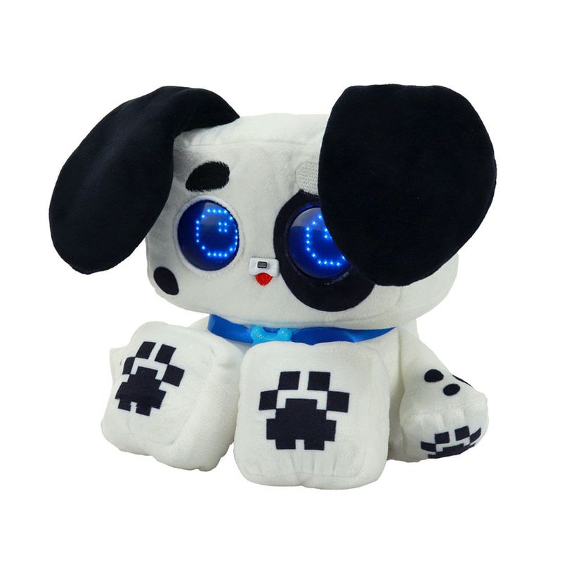 As orelhas caidinhas, o corpinho macio e os detalhes em estilo pixelado tornam esse cachorrinho uma mistura perfeita de fofura e tecnologia.