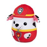 PELÚCIA SQUISH Marshall. Feita de uma material super macio e mega fofinho de apertar, a pelúcia arredondada apresenta o Marshall em seu uniforme de bombeiro vermelho com o emblema bordado, orelhas caídas e aproximadamente 30 cm de altura. MACIO E ABRAÇÁVEL: As pelúcias squish da Patrulha Canina são apropriadas para bebês e crianças maiores de 1 ano e feitas por meio de materiais premium que possibilitam a lavagem.