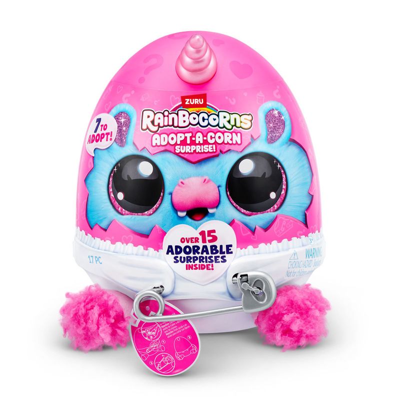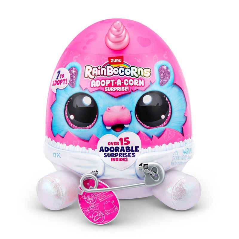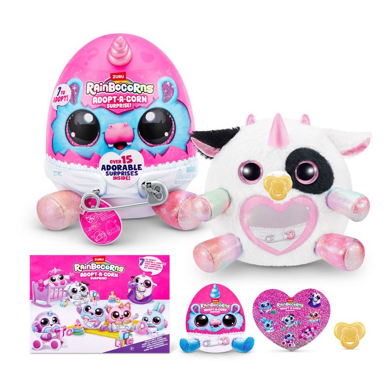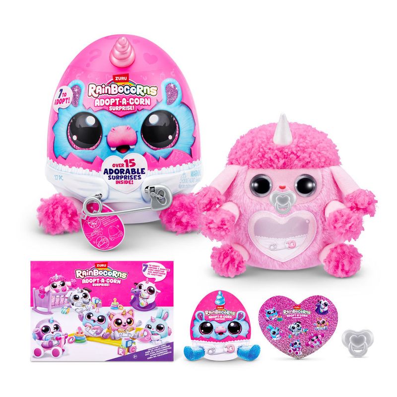 Descubra a emocionante experiência de desvendar as surpresas mágicas doRainbocorn Adopt-A-Corn Surprise Series 1, a pelúcia baby que vem com chupeta e mais 15 surpresas para encantar e surpreender os pequenos.