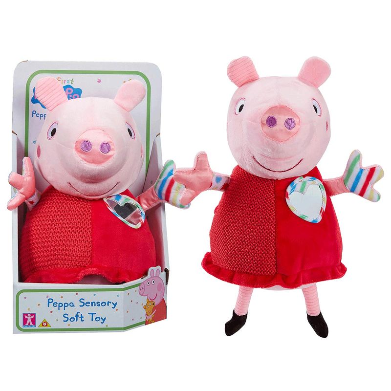 Pelúcia Sensorial Peppa Pig Marca: Sunny. Coleção: My First Peppa Pig. Altura: Aproximadamente 22 cm. Minha primeira pelúcia interativa da peppa pig, vem com sons para deixar a brincadeira ainda mais real e divertida. Ela estimula os sentidos do bebê e desenvolve sua imaginação! Além de sons, a pelúcia tem superfícies multi-texturizadas.