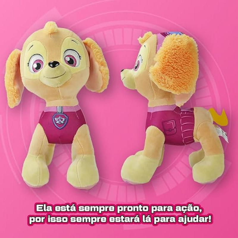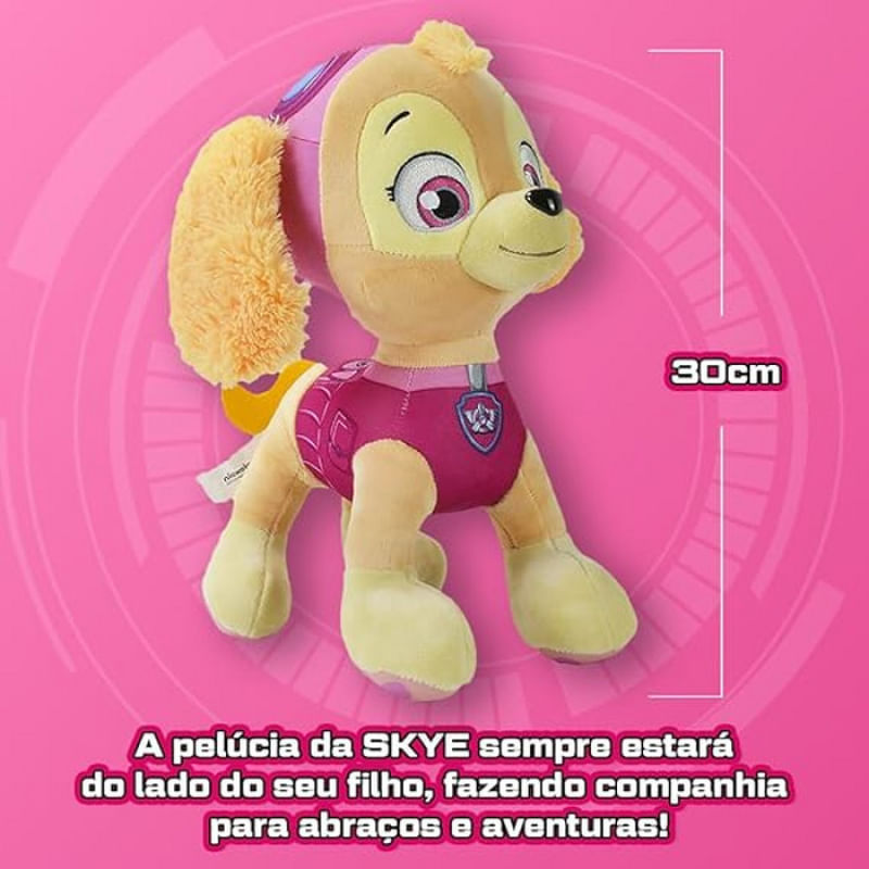 PELÚCIA SKYE - PATRULHA CANINA - SUNNYA pelúcia Skye da Patrulha Canina é uma companheira divertida e encantadora para as crianças. Com material macio e toque agradável, proporciona conforto e segurança durante abraços e brincadeiras. Esta pelúcia estimula a imaginação, a criatividade e o faz de conta, permitindo que as crianças recriem aventuras da Patrulha Canina. Ideal para presentear, colecionar ou decorar quartos infantis, é perfeita para garantir momentos de diversão prolongados e cheios de emoção.