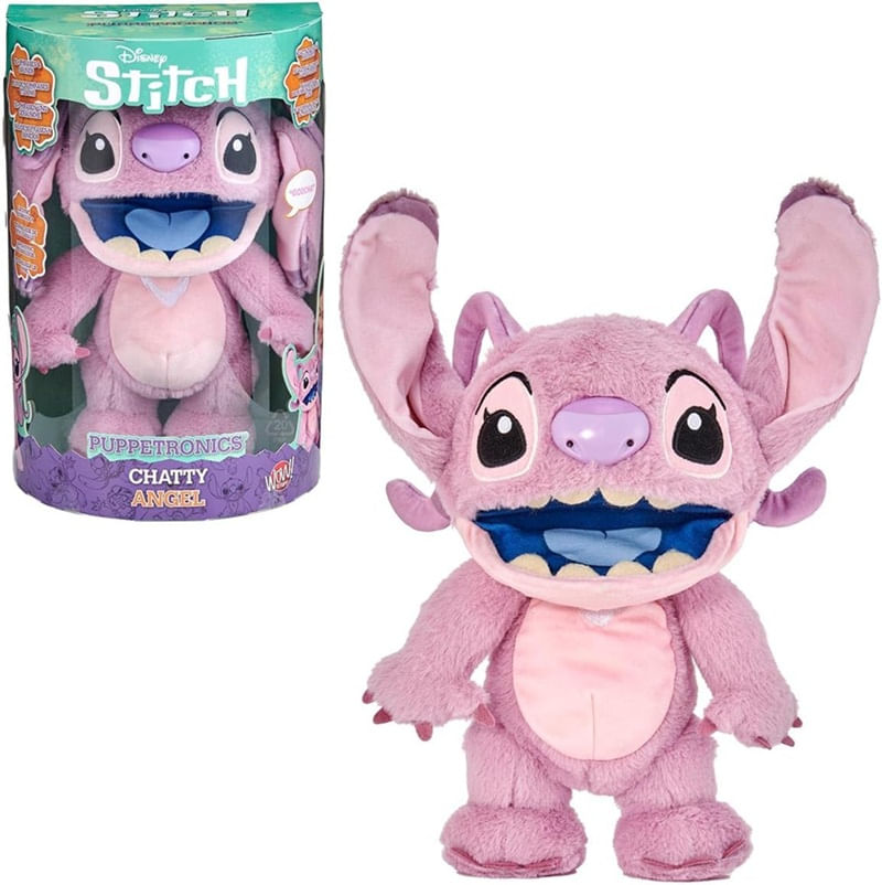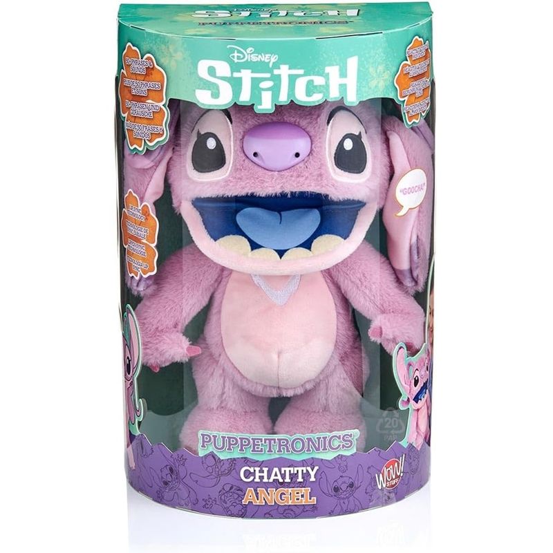 A pelúcia Chatty Stitch fala mais de 50 frases e sons em sua voz alienígena Tantalog, além de ter boca móvel, cabeça giratória, orelhas articuladas e sensores de toque na cabeça e no nariz. A tecnologia de sincronização labial permite que ele fale e se mova de maneira natural, tornando a brincadeira ainda mais envolvente.