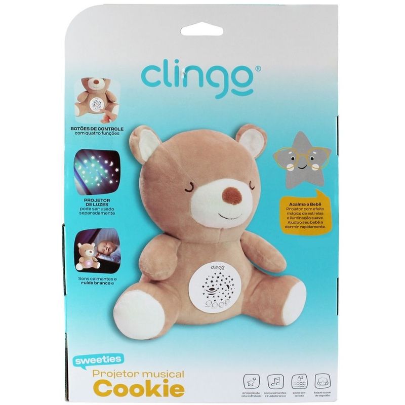 PELUCIA URSINHO MUSICAL E LUZ BEGE - 4 FUNÇÕES - CLINGO - 0M+