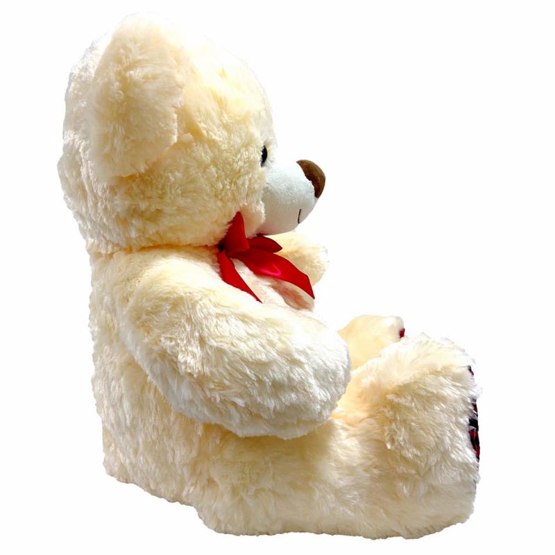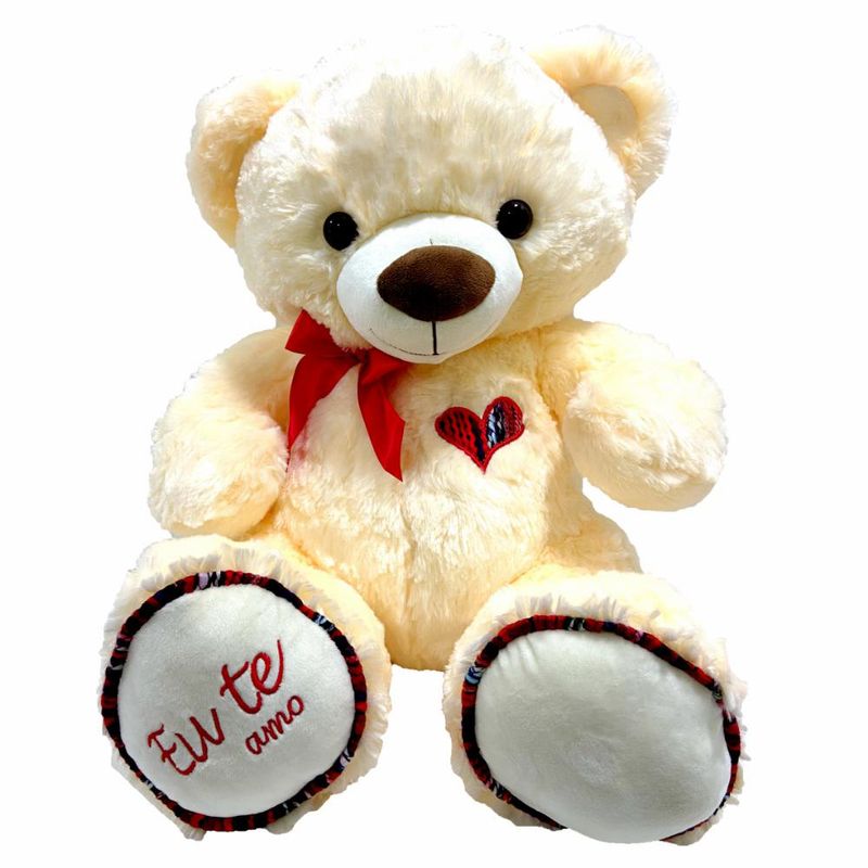 Esse lindo urso de pelúcia articulado com laço e o coração bordado é uma ótima opção para presentear quem você ama. Ele é muito grande e fofo! Fica muito bonito como decoração também.