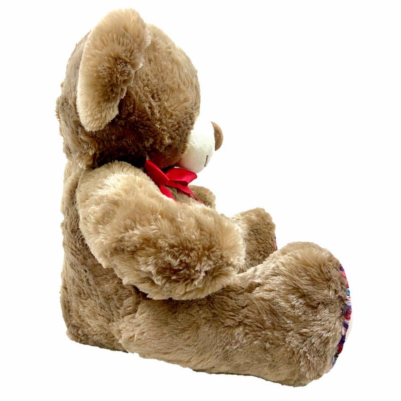 Esse lindo urso de pelúcia articulado com laço e o coração bordado é uma ótima opção para presentear quem você ama. Ele é muito grande e fofo! Fica muito bonito como decoração também.