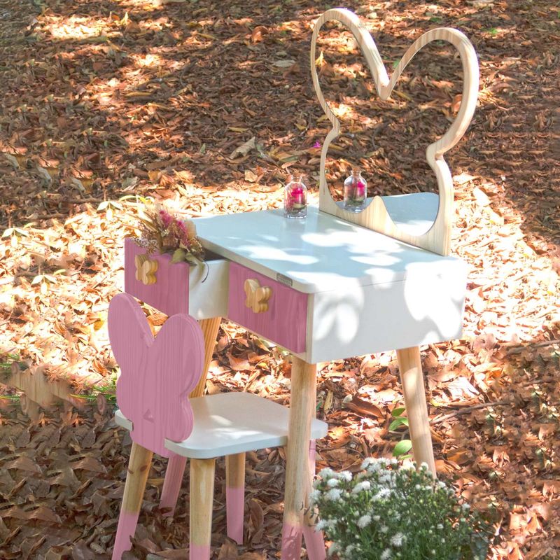 Penteadeira Cadeirinha e Espelho Borboleta Tamanho P (100cm) / Rosa
