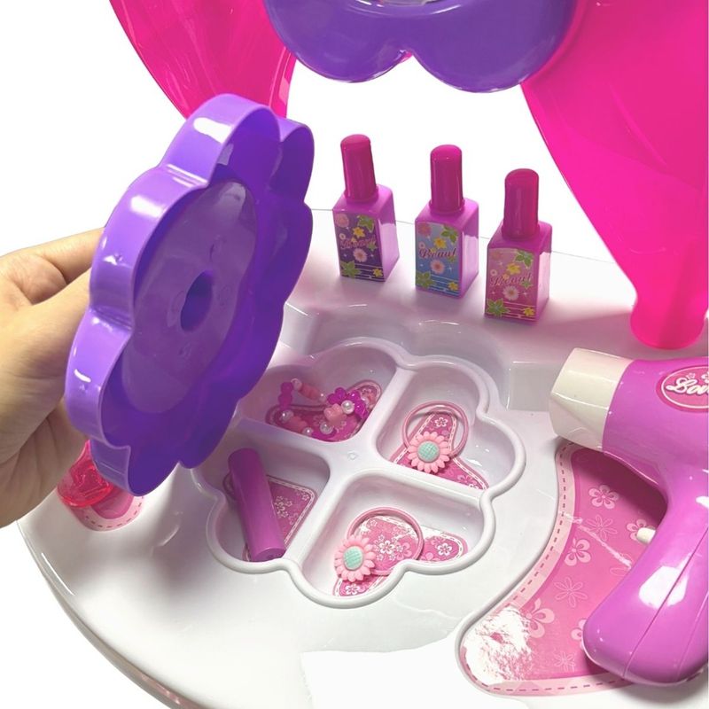 A penteadeira infantil é o sonho de consumo de toda menina; e não apenas para ser usada para guardar acessórios e presilhas de cabelo, mas como brinquedo também. Elas se divertem muito em frente ao espelho, tentando imitar a mãe passando maquiagem e penteando o cabelo. Especificações: • Marca: Importway