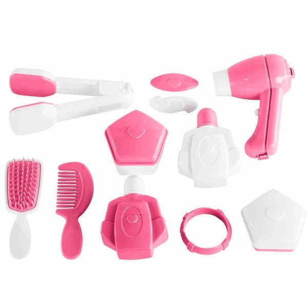 • 01 Penteadeira, 01 Banco, 01 Prancha, 01 Secador, 01 Escova, 01 Pente, 02 Presilhas, 01 Pulseira, 02 Frascos com tampa, 02 Porta joias com tampa, 01 Porta retrato, 01 Tampa, 01 Manual de Instruções.