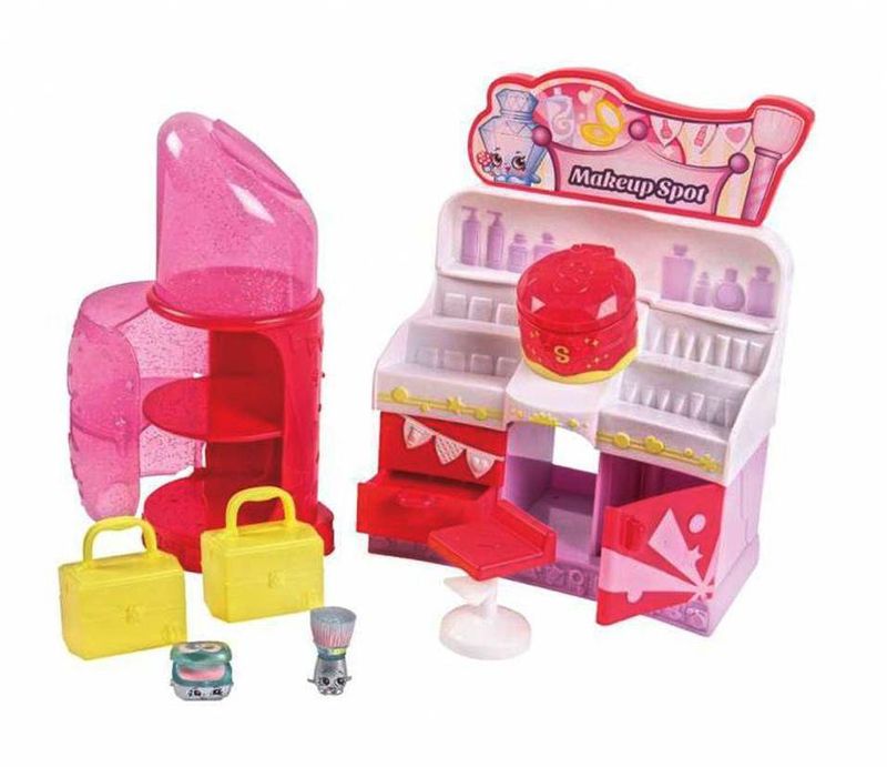 A penteadeira deixas todas fabulosas! Exiba seus Shopkins no display batom ou guarde-os nas gavetas. Sente-os no banquinho e simule uma producao de beleza! Depois e so sair e desfilar todo o glamour com o seu estojo de maquiagem. Porque eles sao irresistiveis!
