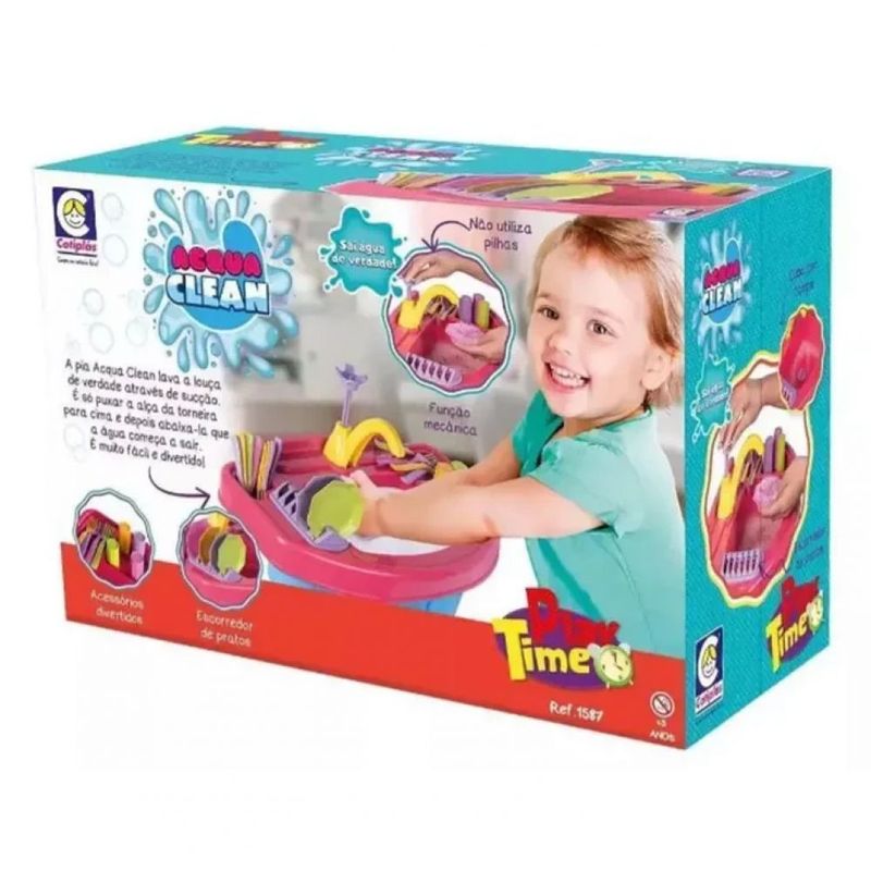 Um acessório para deixar a brincadeira ainda mais divertida. Funciona à sucção, é só puxar a alça da torneira para cima e depois abaixe, repetindo a operação até começar a sugar a água do reservatório. Quando a água sair é só lavar toda a louça! Você vai se divertir muito com a Acqua Clean, uma pia que vem com todos os acessórios para sua brincadeira ser completa . O mais legal é abrir a torneira e ver que sai água de verdade!