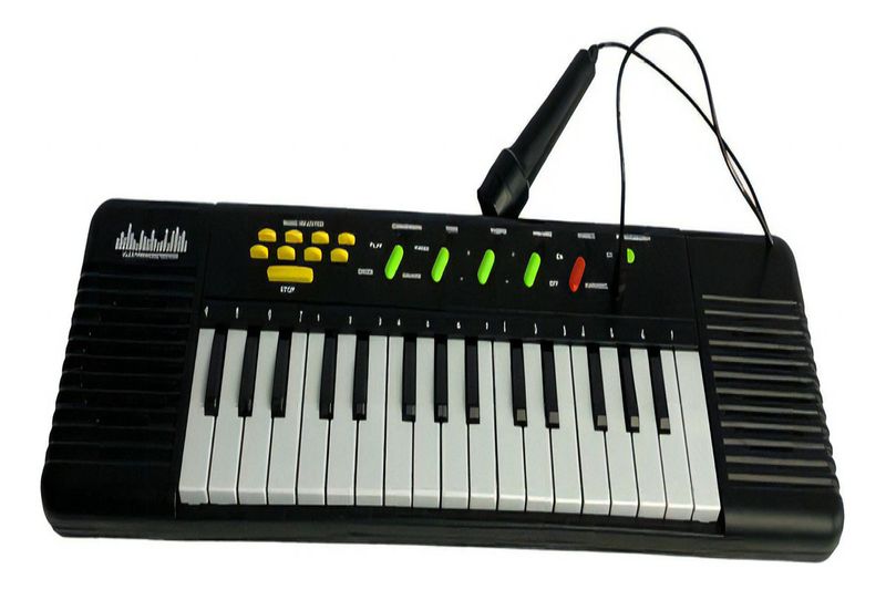 Teclado Eletrônico Infantil 32 Teclas Com MicrofoneEste teclado musical da ToyKing é um brinquedo excelente para o desenvolvimento da habilidade motora da criança, além de estimular a imaginação e o gosto pela música.Possui 32 teclas, 22 músicas, controle de volume, 2 tons, controle de andamento, além de acompanhar um lindo microfone que funciona de verdade.Especificações:32 TeclasAlto-falanteAcompanha MicrofoneVem com 22 Músicas GravadasVolume RegulávelIndicado para crianças a partir de 3 anosProduto Certificado Pelo INMETROHomologação Inmetro: 3956/2018-BRI-36'.