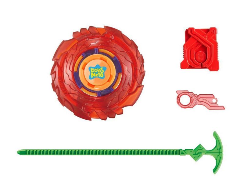 PIÃO GIRO MALUCO DO LUCCAS NETO - Piões para combate com alta performance em 2 sortimentos com acabamento em plástico flexível(azul e vermelho). Acompanha ferramenta, corda e lançador.