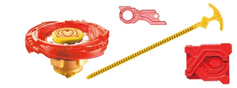 pião Para Combate Inspirado No Homem de Ferro Dos Vingadores com Alta Performance, com Acabamento em Plástico Flexível. Acompanha Ferramenta, Corda e Lançador.