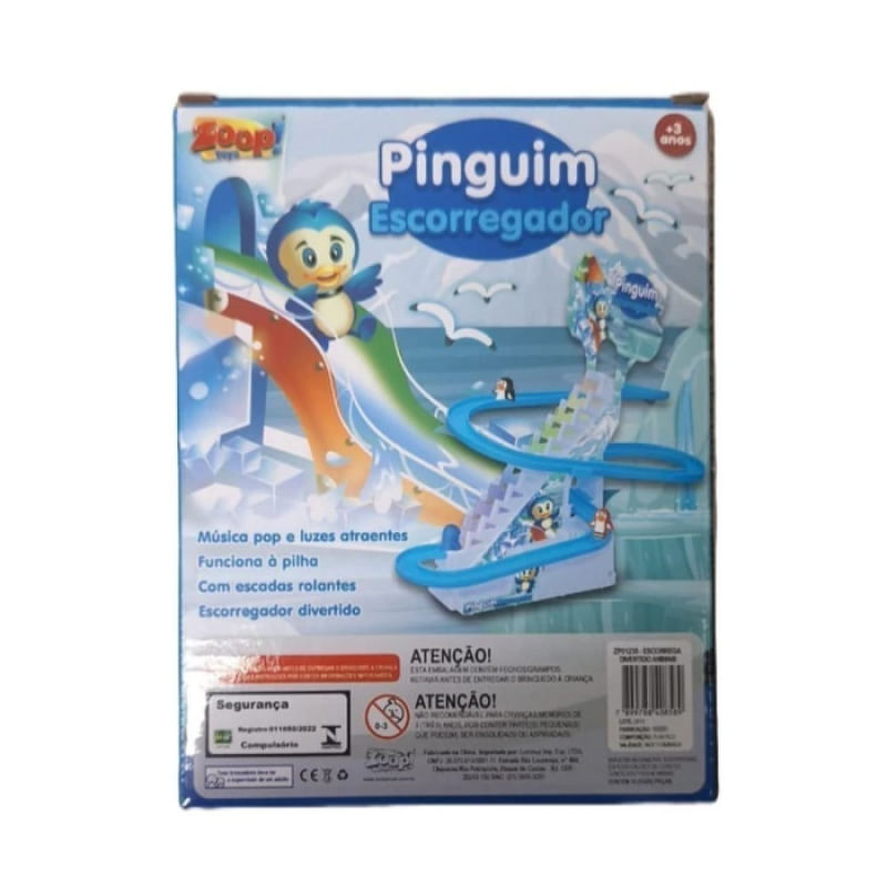O Pinguim Escorregador da Zoop Toys é uma pista musical divertida com pinguins deslizantes, perfeita para estimular a coordenação motora e a imaginação das crianças. Os pinguins sobem escadas e deslizam por uma pista em espiral, acompanhados de músicas animadas que tornam a brincadeira ainda mais envolvente.Fabricado em plástico ABS resistente, o brinquedo garante durabilidade e segurança durante o uso. Funciona com pilhas AA, que acionam a música e o mecanismo de subida dos pinguins. Um brinquedo interativo que diverte e entretém por horas, ideal para crianças a partir de 3 anos.