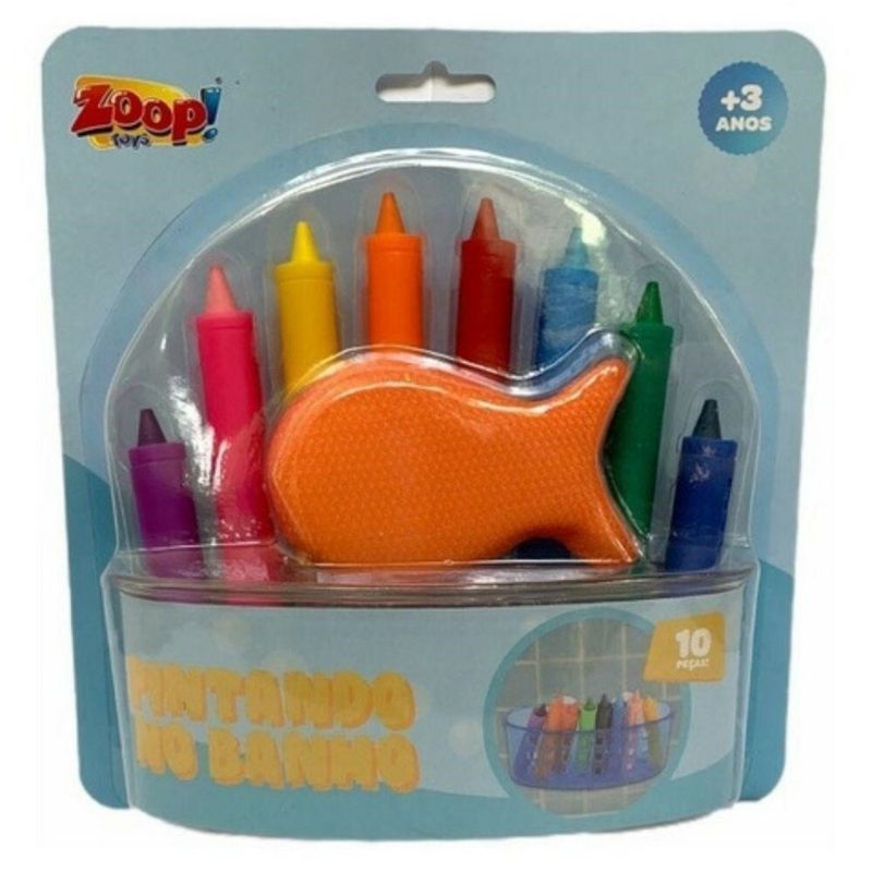 Kit 8 Lapis de banho colorido risca e apaga com suporte e esponja- Zoop Toys
