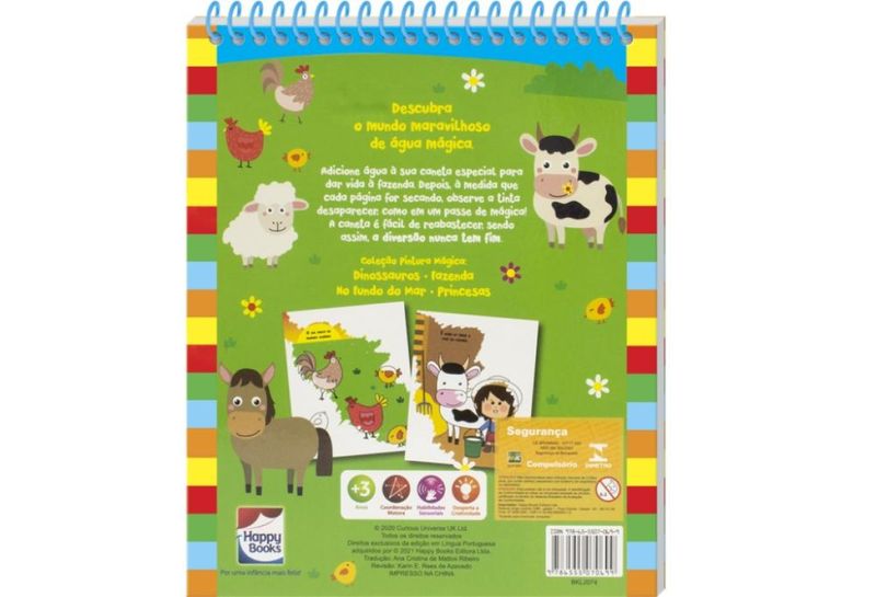 Idade Recomendada: Acima de 4 anos;Dimensões: 18,5x23,5 cm;Páginas: 6;Acabamento: Cartonado com espiral. Acompanha caneta mágica (à base d'água).